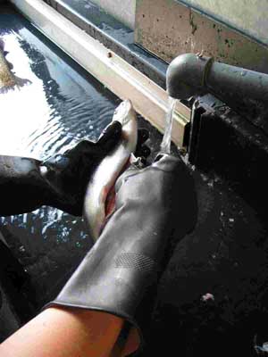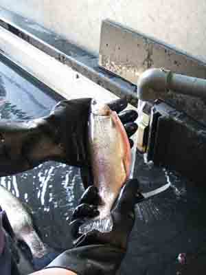 ab Hof fangen wir für den Kunden die Forellen direkt