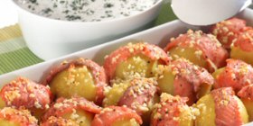 Lachsforellen-Kartoffen mit Dill-Dip